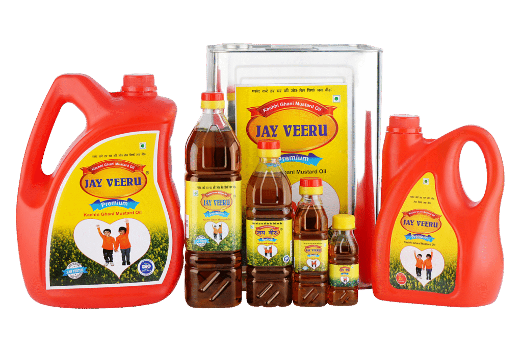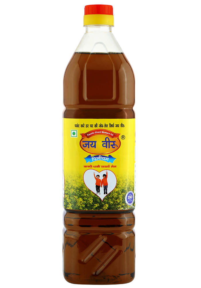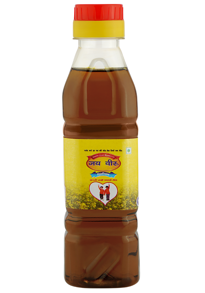 Jay Veeru Kachhi Ghani Mustard Oil is a pure, cold-pressed mustard oil made using traditional methods to retain its natural aroma, sharp flavor, and essential nutrients. Ideal for cooking and pickling, it promotes heart health and digestion.